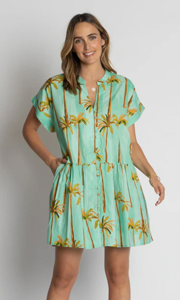 This dress features a tropical palm tree digital print that brings holiday vibes to your wardrobe. The button-through design adds versatility, while short sleeves and practical side pockets ensure all-day comfort.