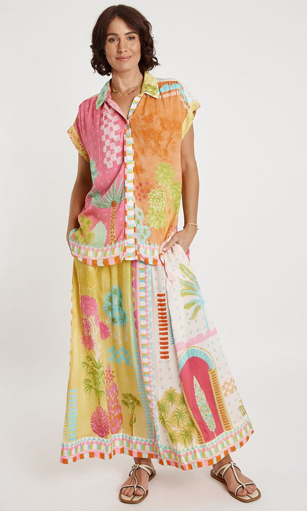 Effortlessly cool and undeniably comfortable. Featuring a classic collar and full button-front closure, it's easy to style for any occasion. A gently curved hem keeps things interesting, and the eye-catching digital print brings personality to every wear. Throw it on and feel the difference.